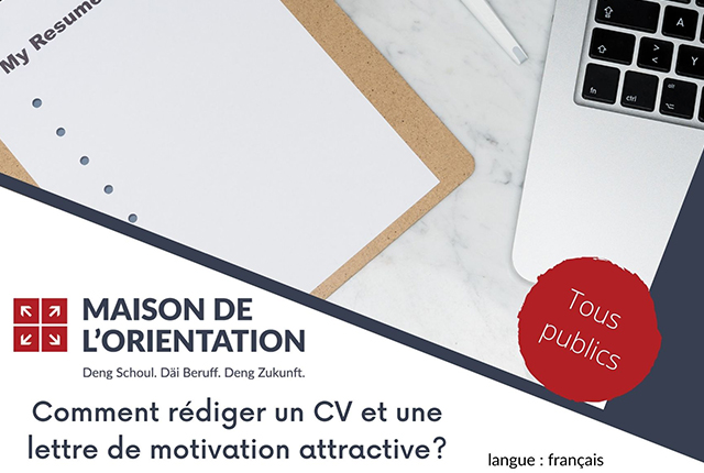 Vous souhaitez postuler pour un nouvel emploi ou bien vous préparez un dossier de candidature pour vos études supérieures? Lors de notre atelier, les intervenants vous fourniront de nombreuses astuces pourque votre candidature sorte du lot - saisissez l'occasion!