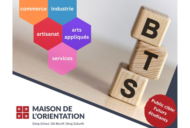 Tu es à la recherche d'une formation à la fois concrète et professionnalisante qui te prépares de façon optimale pour le marché du travail? Ne manque pas notre séance d’information dédiée aux BTS au Luxembourg! Viens à la rencontre de représentants des différents BTS et pose-leur toutes tes questions sur ton avenir.