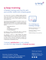 La formation fait partie intégrante du service chez q-leap. Notre catalogue de formation est centré sur notre cœur de métier, la qualité des logiciels.